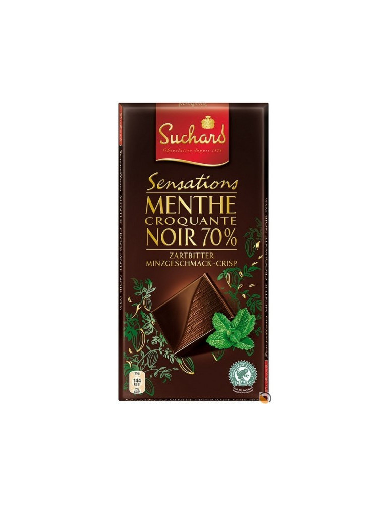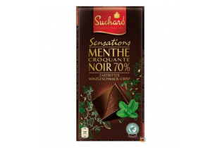 Horká čokoláda s obsahom kakaa 70% a kúskami mäty. Hmotnosť 100g.